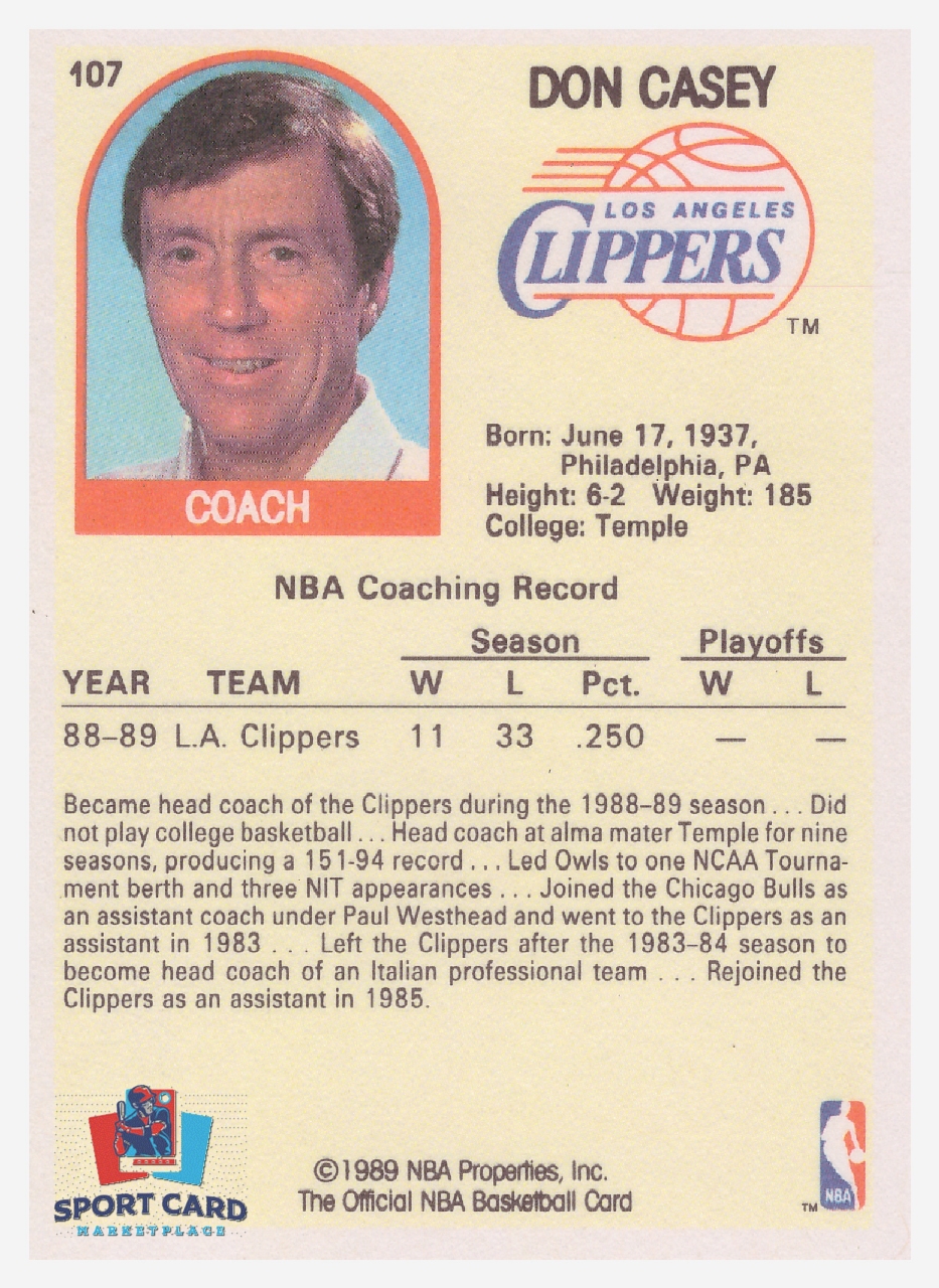 1989-90 NBA Hoops #107 Don Casey / Los Angeles Clippers