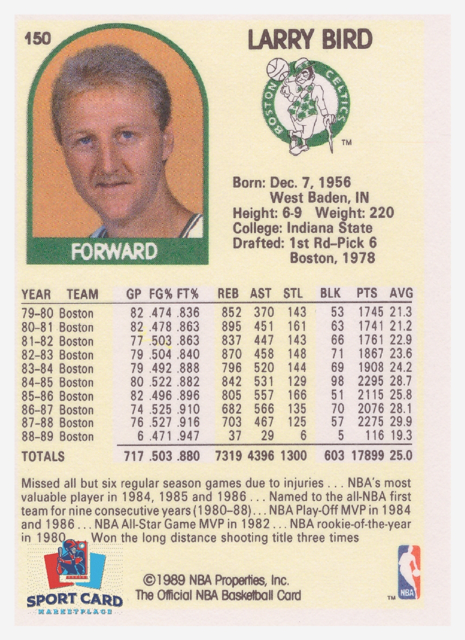 1989-90 NBA Hoops #150 Larry Bird / Boston Celtics