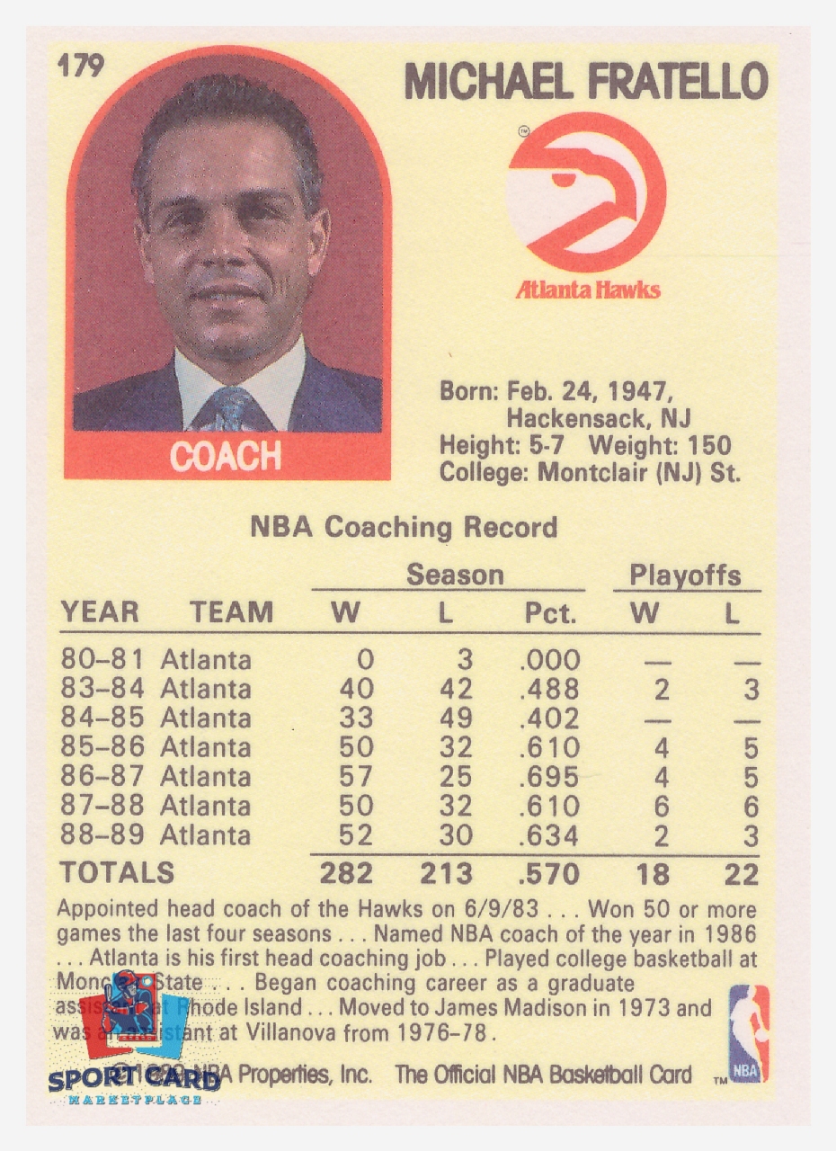 1989-90 NBA Hoops #179 Michael Fratello / Atlanta Hawks