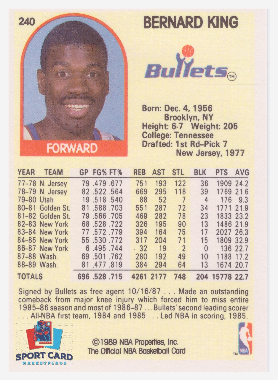 1989-90 NBA Hoops #240 Bernard King / Washington Bullets