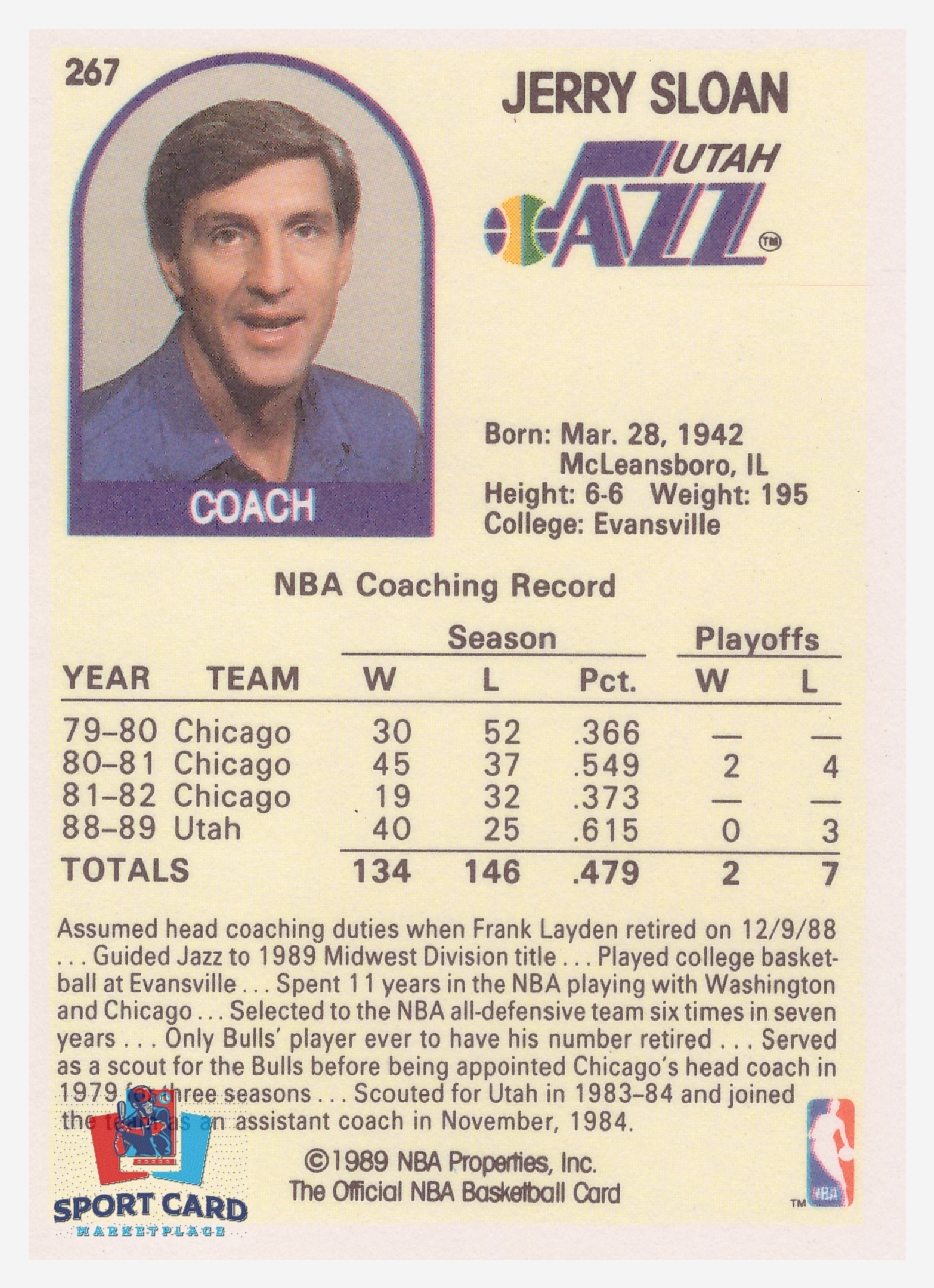 1989-90 NBA Hoops #267 Jerry Sloan / Utah Jazz