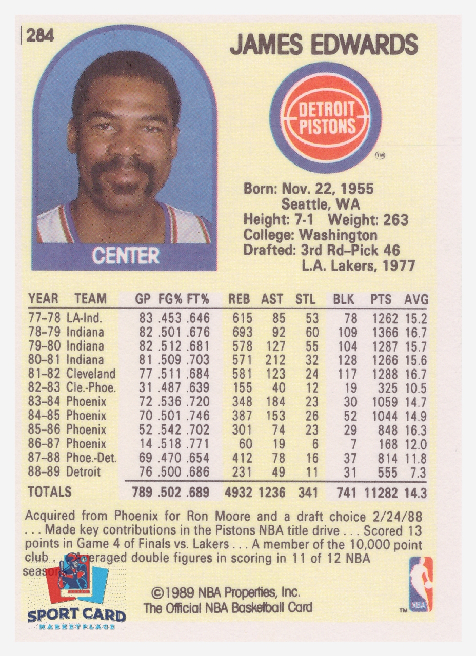 1989-90 NBA Hoops #284 James Edwards / Detroit Pistons