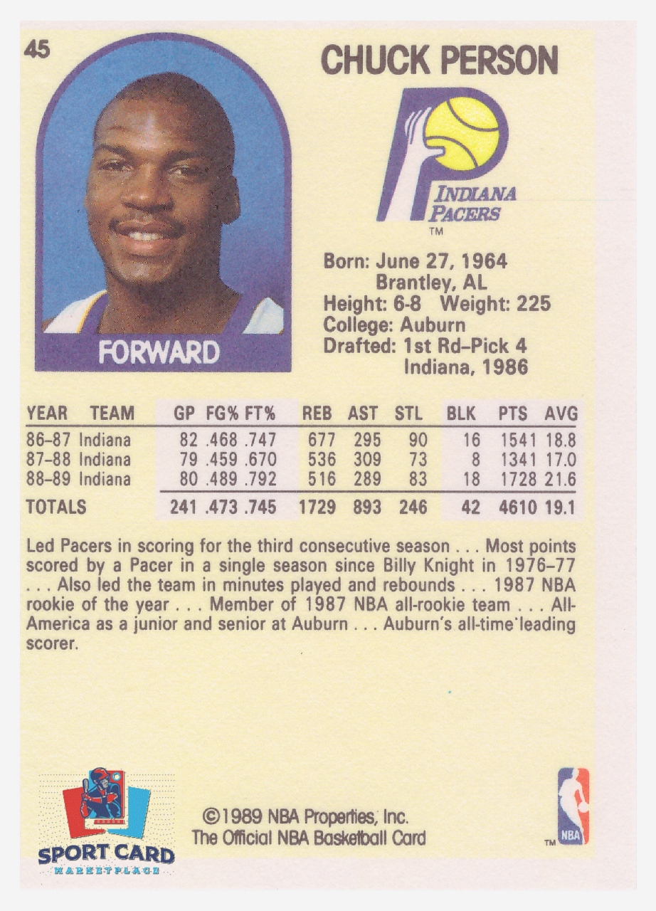 1989-90 NBA Hoops #45 Chuck Person / Indiana Pacers