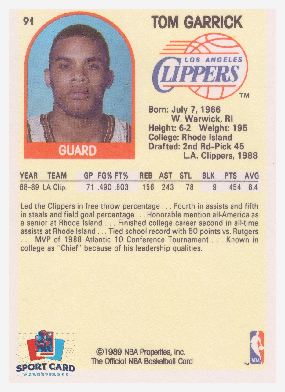 1989-90 NBA Hoops #91 Tom Garrick / Los Angeles Clippers