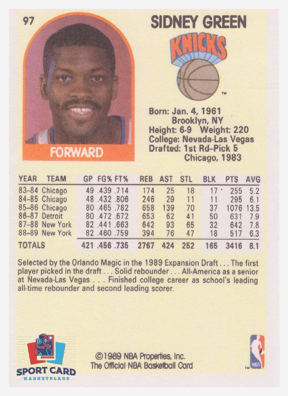 1989-90 NBA Hoops #97 Sidney Green / New York Knicks