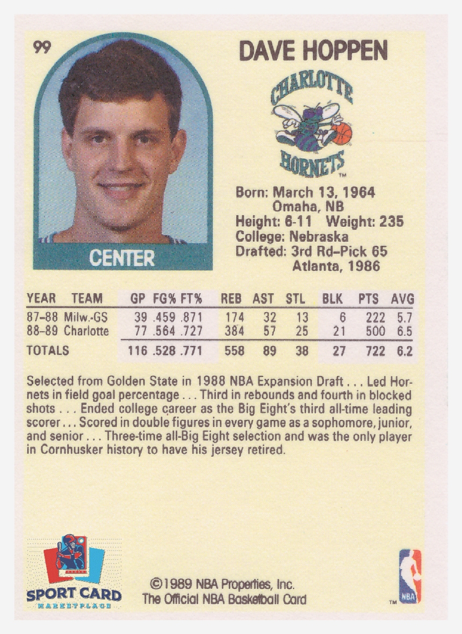 1989-90 NBA Hoops #99 David Hoppen / Charlotte Hornets