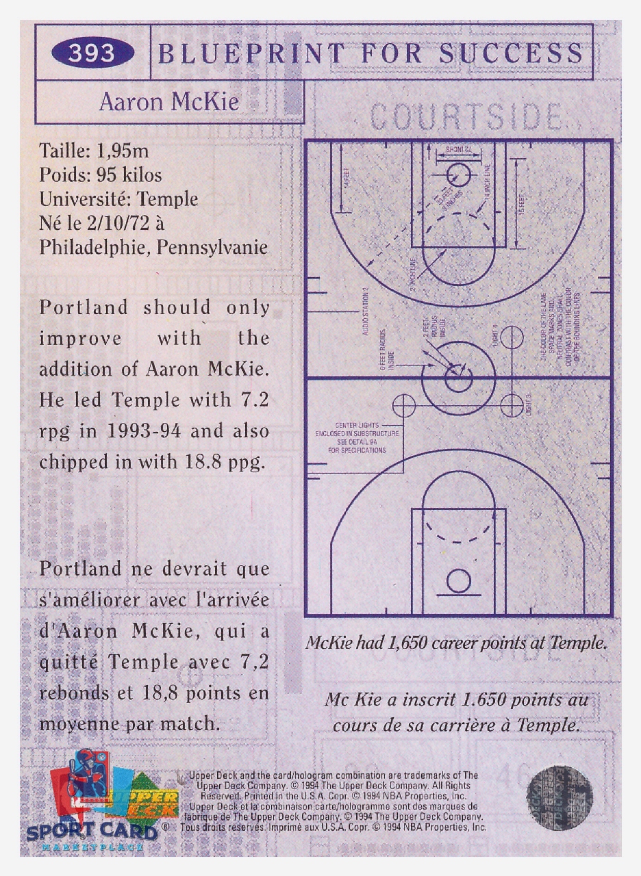 1994 Upper Deck Collector’s Choice – Blueprint For Success Aaron McKie / Portland Trail Blazers #393