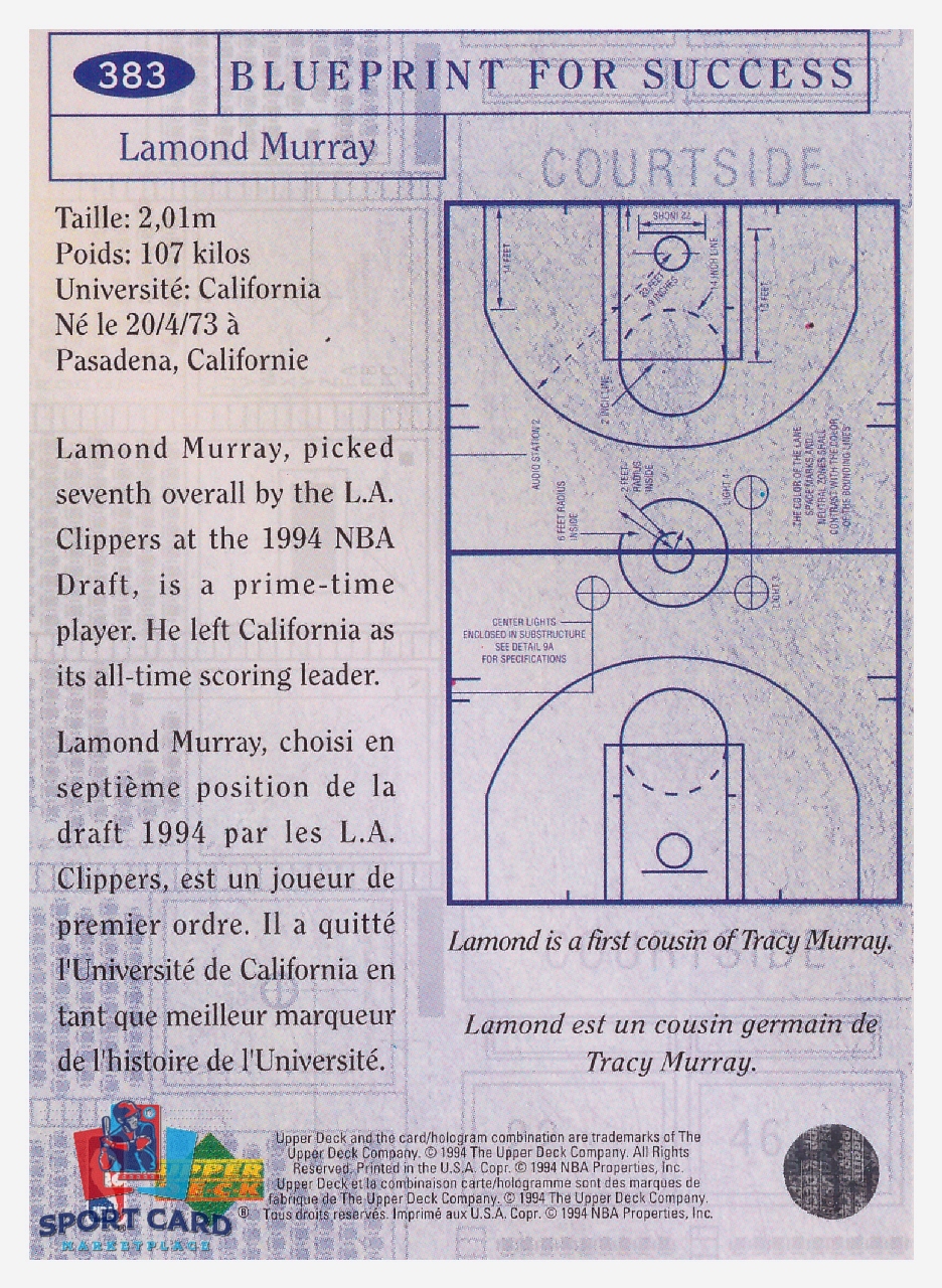 1994 Upper Deck Collector’s Choice – Blueprint For Success Lamond Murray / Los Angeles Clippers #383