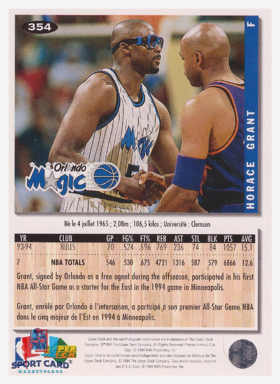 1994 Upper Deck Collector’s Choice Horace Grant / Orlando Magic #354
