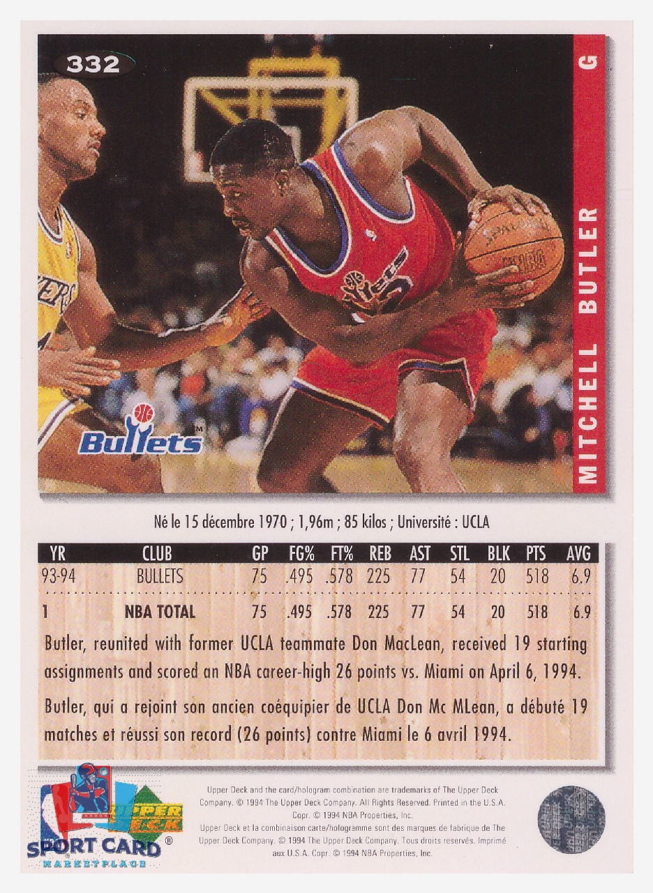 1994 Upper Deck Collector’s Choice Mitchell Butler / Washington Bullets #332