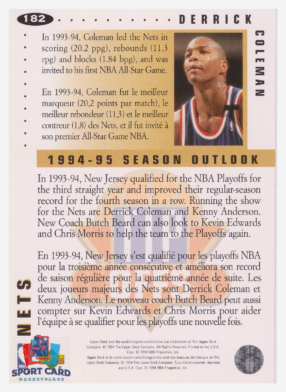 1994 Upper Deck Collector’s Choice – Tip Offs Derrick Coleman / New Jersey Nets #182
