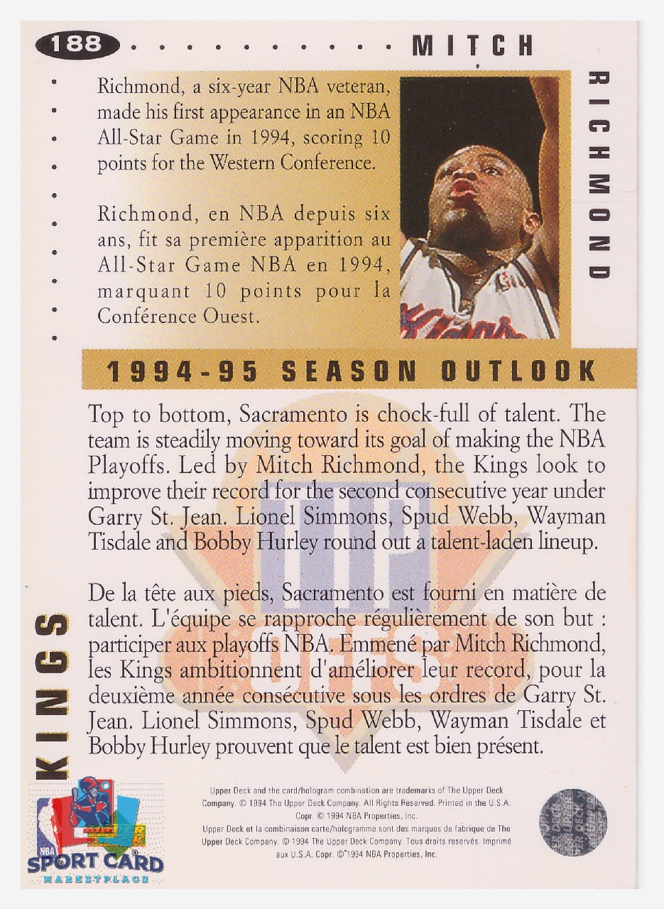 1994 Upper Deck Collector’s Choice – Tip Offs Mitch Richmond / Sacramento Kings #188