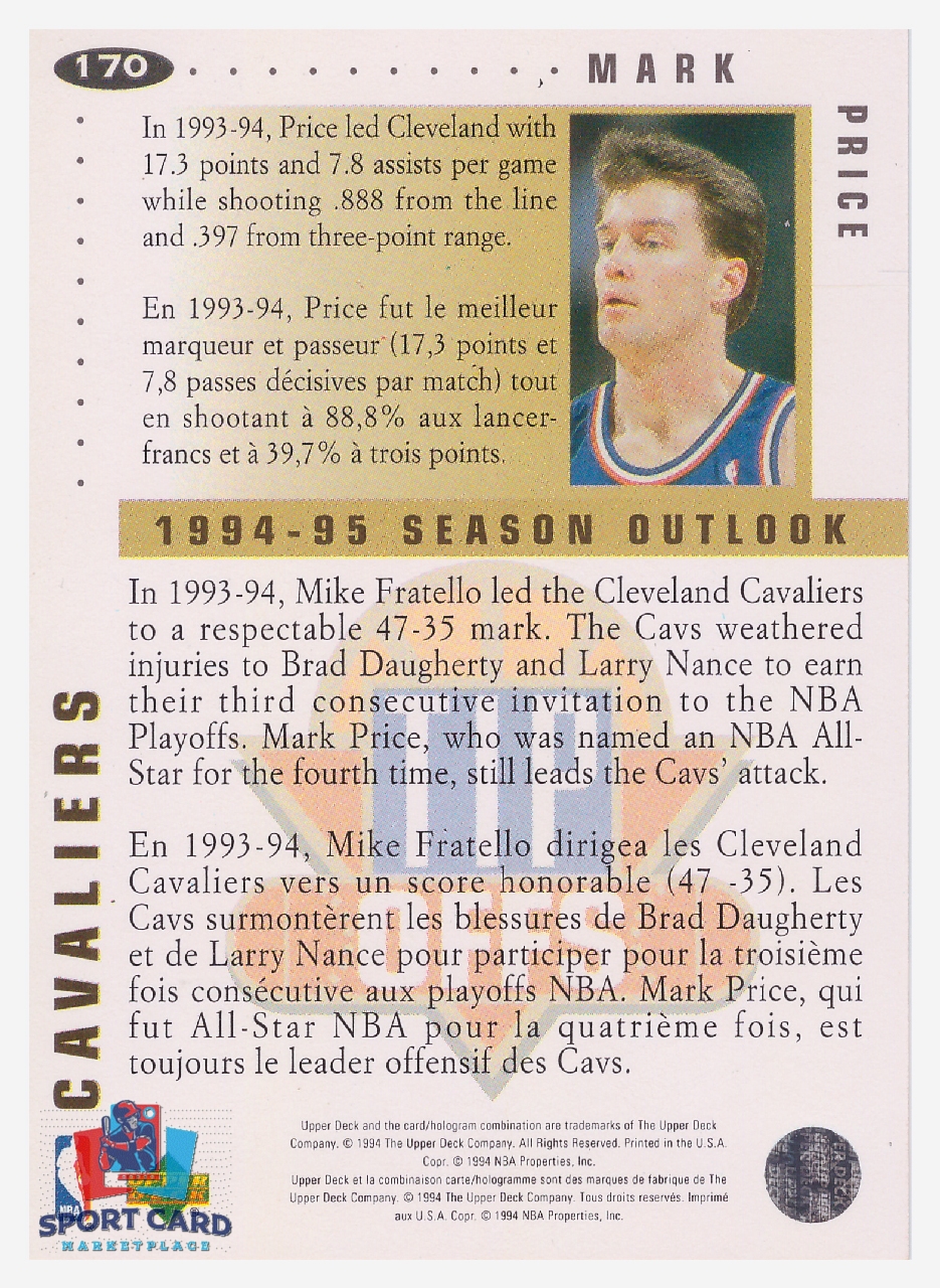 1994 Upper Deck Collector’s Choice – Tip Offs Silver Signature Mark Price / Cleveland Cavaliers #170