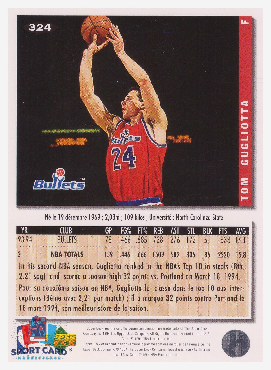 1994 Upper Deck Collector’s Choice Tom Gugliotta / Washington Bullets #324