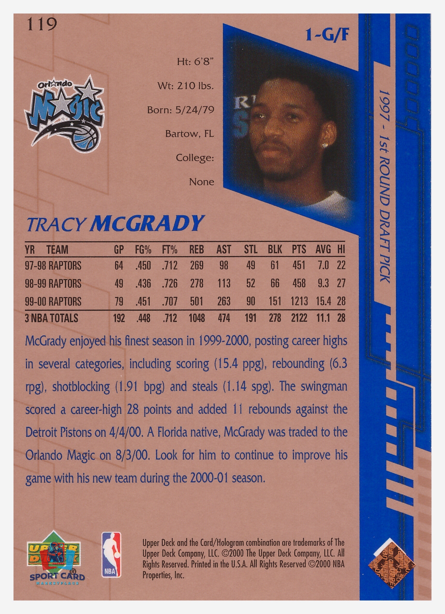 2000 Upper Deck Base Tracy McGrady #119