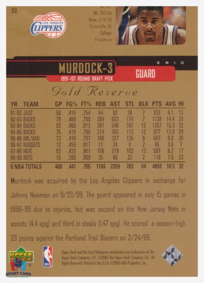 2000 Upper Deck Gold Reserve Eric Murdock #99