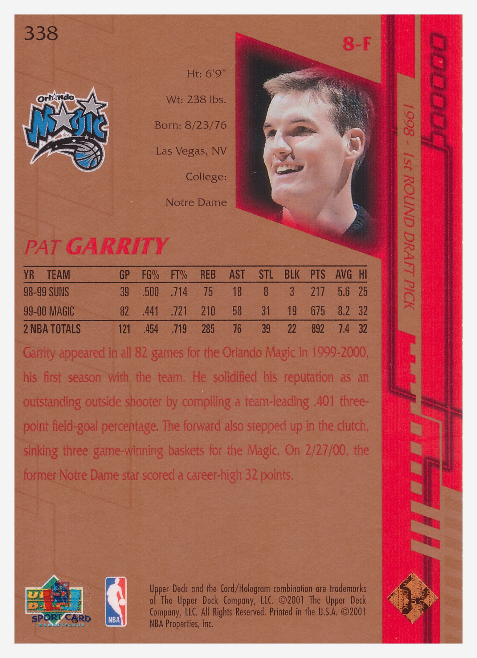 2001 Upper Deck Game Jersey Edition Pat Garrity #338